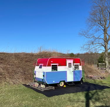 Ms. Frolic, The Camper will soon be offered for overnight stays at the UPCYCLE Center, catering especially to guests traveling to concerts at the Bethel Woods Center for the Arts and guests exploring the Catkills area.