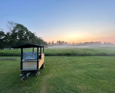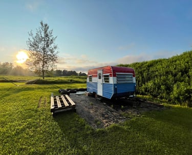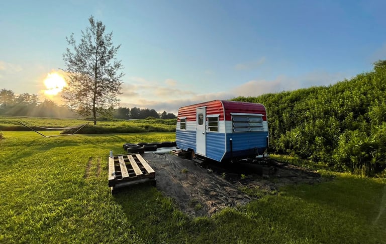 An upcycled vintage camper offering cozy overnight stays and late-night comfort for Bethel Woods concert nights.